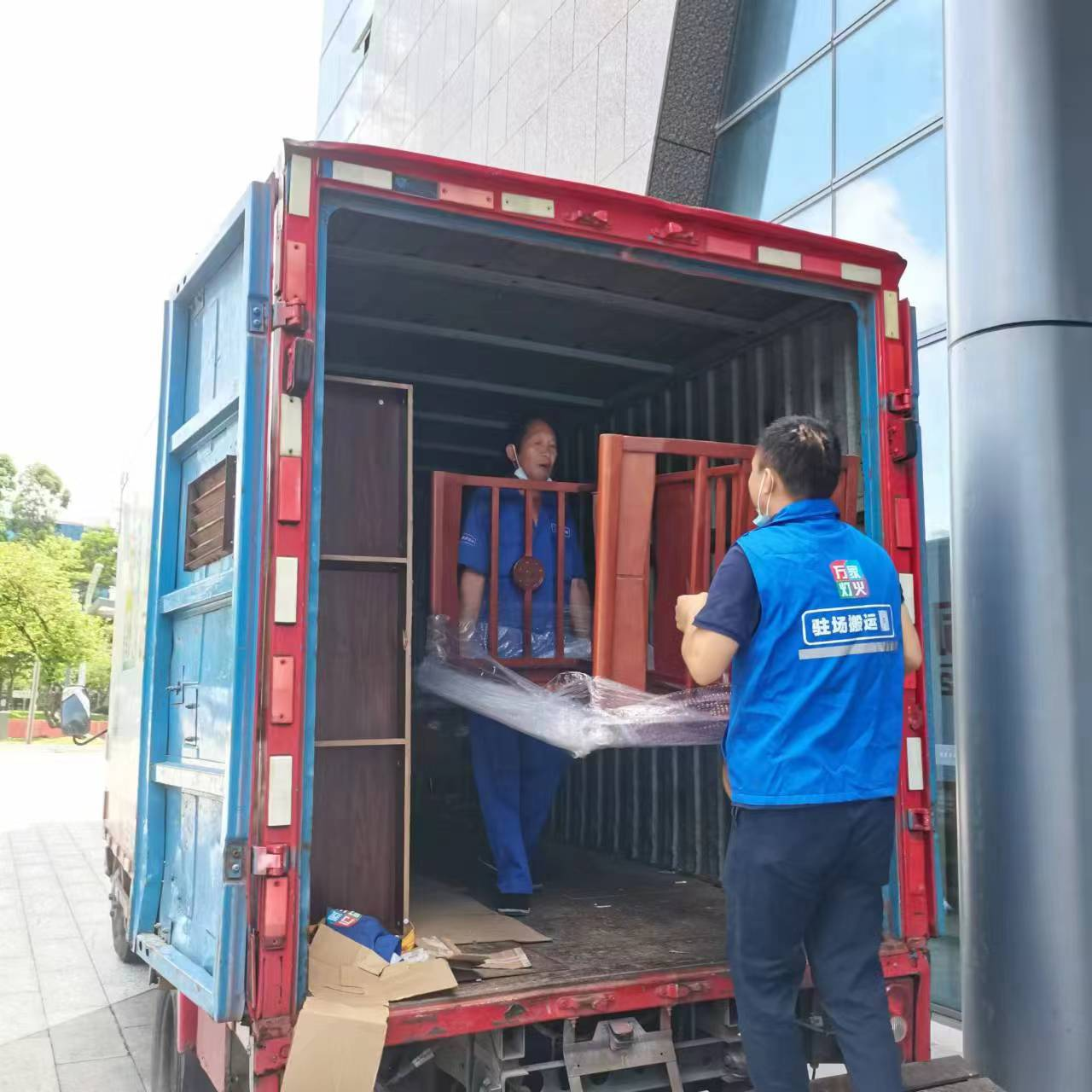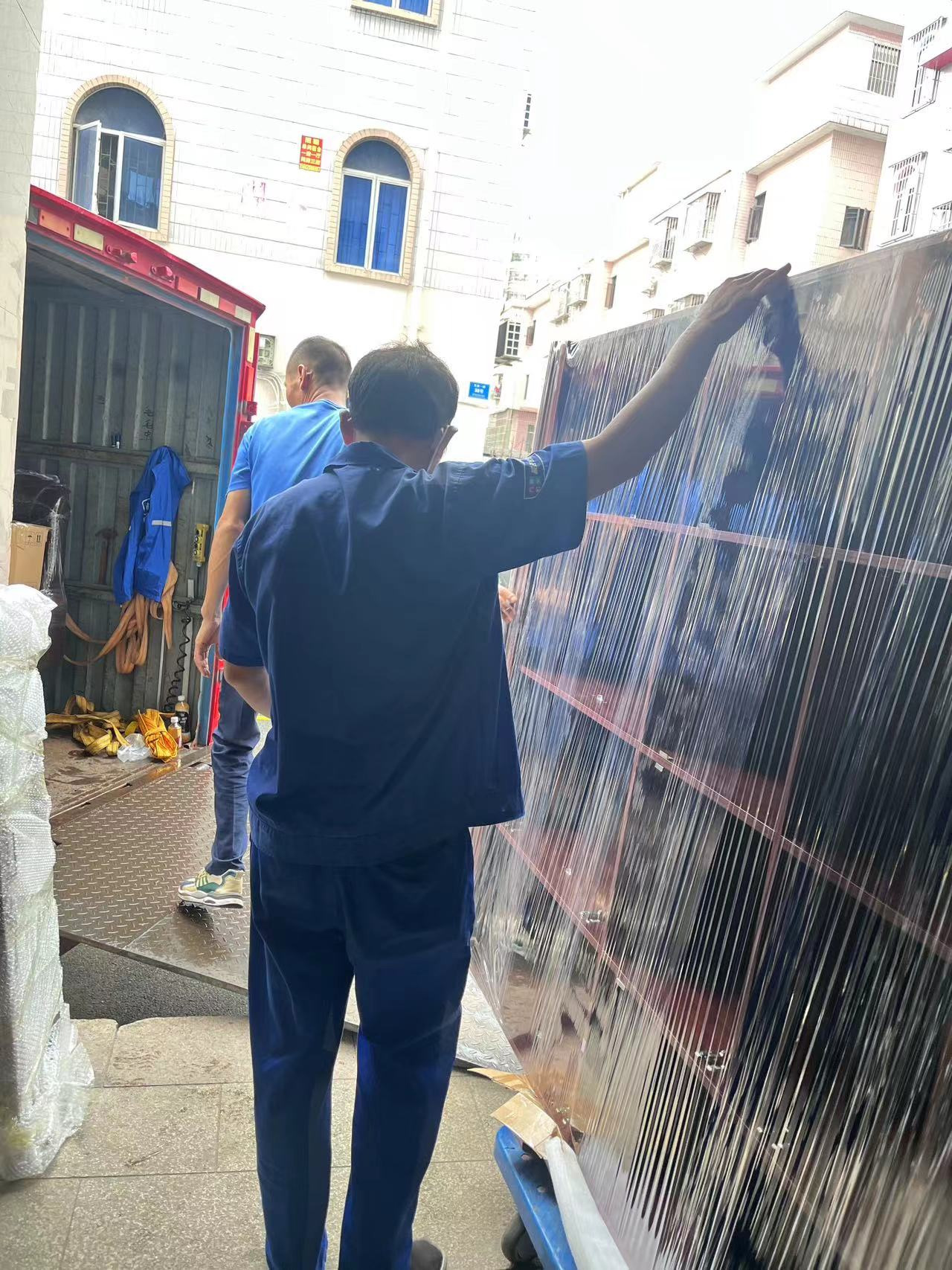此次搬遷,最大難題不是烈日帶來的辛苦,而是在到達(dá)搬入地時(shí),由于種種原因,海納科技大廈的工作人員告訴我們,那里不能用拖車進(jìn)行托運(yùn),尤其是重大物件,再加上貨車的高度與地庫的高度不匹配,貨車無法開到地庫里面去。即便搬遷遇到了困難,我們的工人也能完好解決。他們不是第一次遇到這種情況,也能理解對(duì)方的要求,毫無怨言便進(jìn)行了人工搬運(yùn),手把手齊心協(xié)力將重大的文件柜等徒手搬到遷入地的辦公室里面。在搬入地辦公室中,我們的工人會(huì)根據(jù)客戶的要求以及指導(dǎo),逐一將物品擺放好,再將保護(hù)膜撕下來。也會(huì)在把物品搬進(jìn)去之前,先在地板上鋪上紙箱,以防損壞地板。